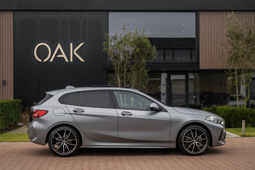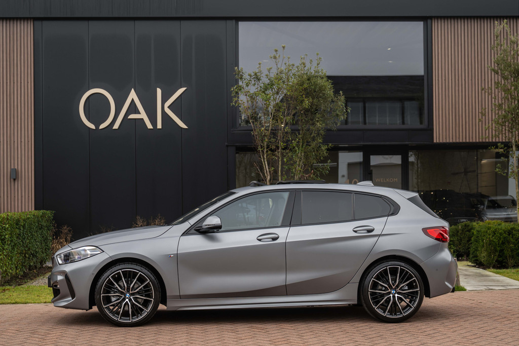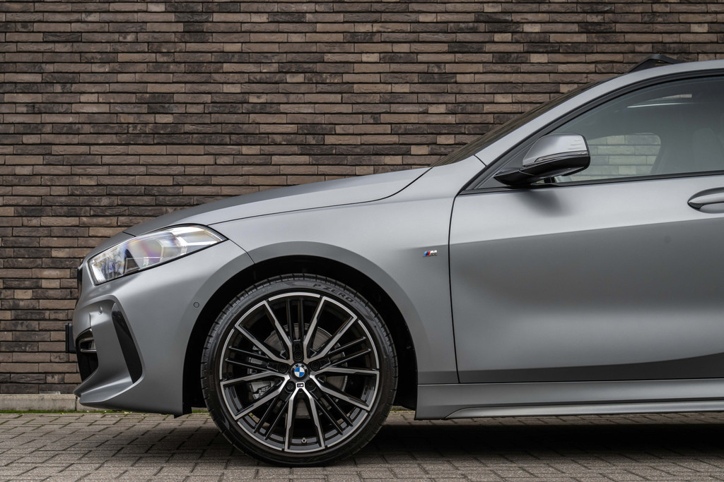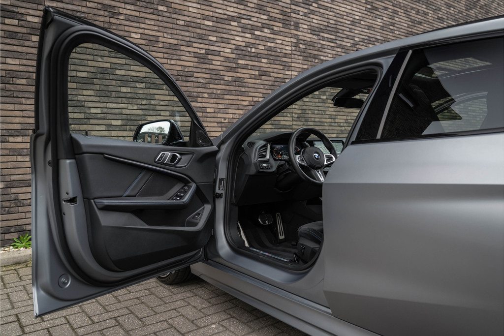 ***VERKOCHT***118i Aut. | M-Sport | Live Cockpit | Schaalstoelen | Panorama | H&K | Camera | 19"LM | Frozen Pure Grey