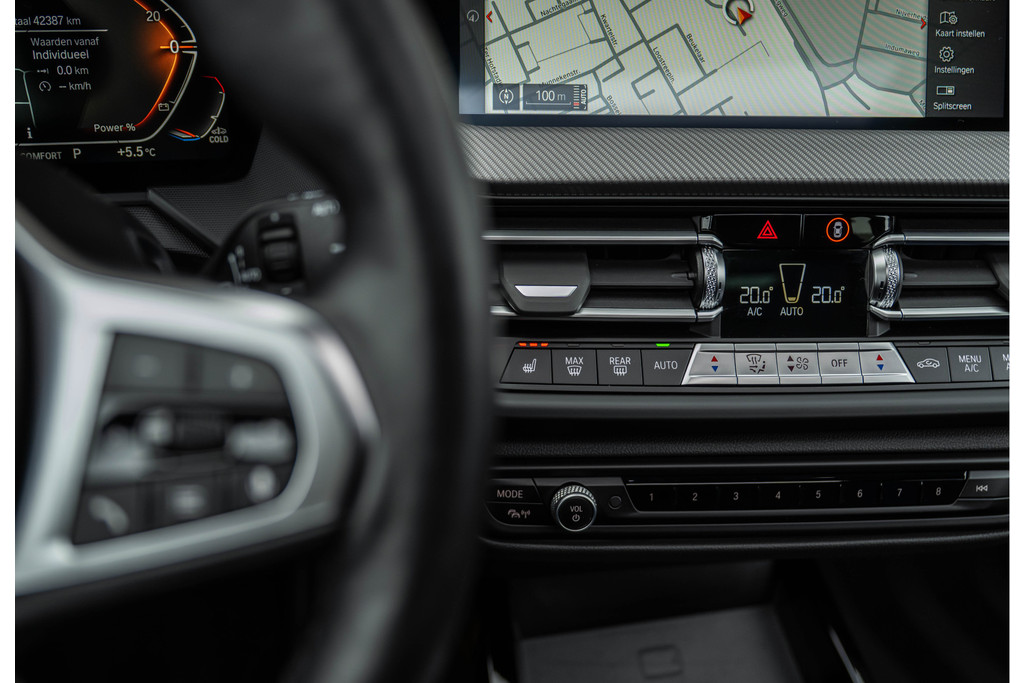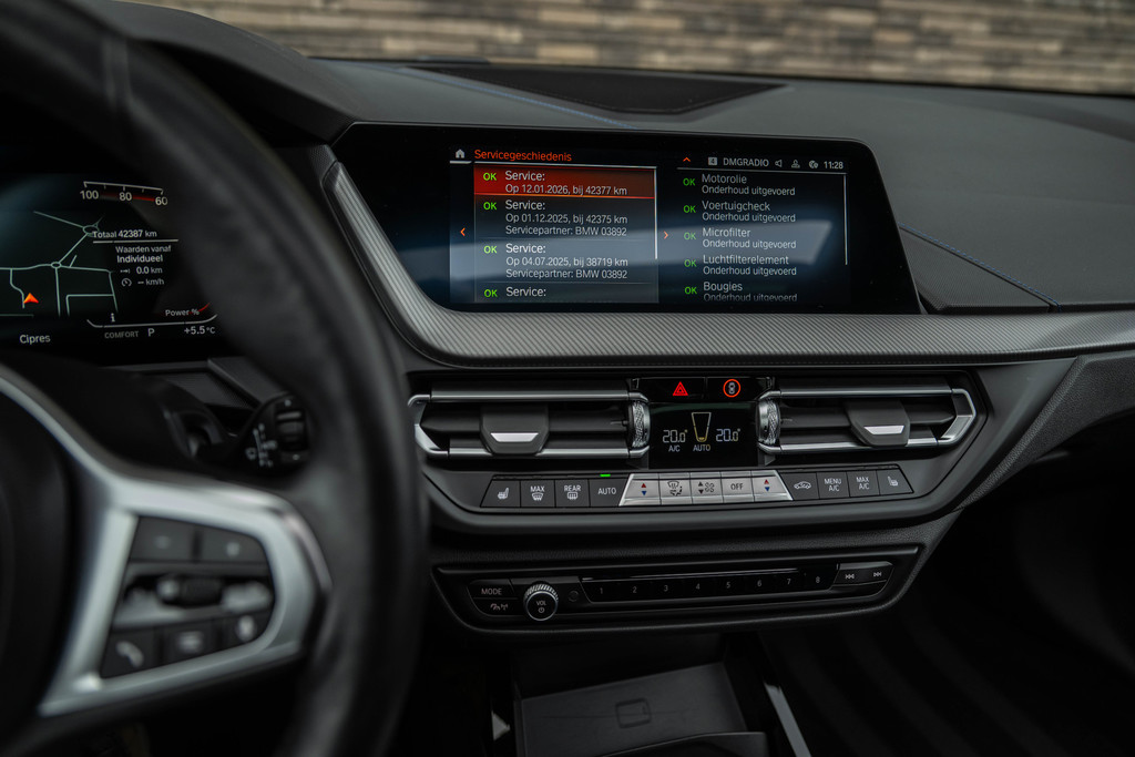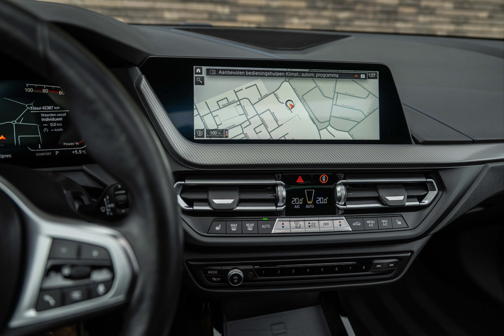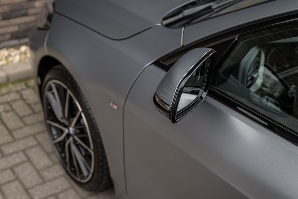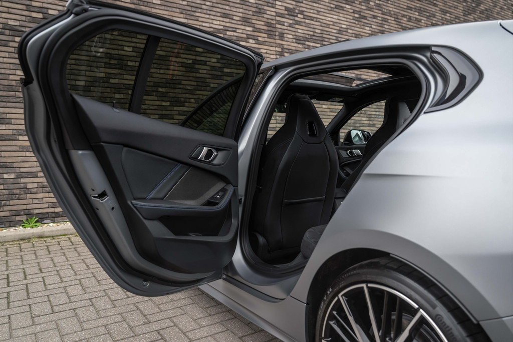 ***VERKOCHT***118i Aut. | M-Sport | Live Cockpit | Schaalstoelen | Panorama | H&K | Camera | 19"LM | Frozen Pure Grey