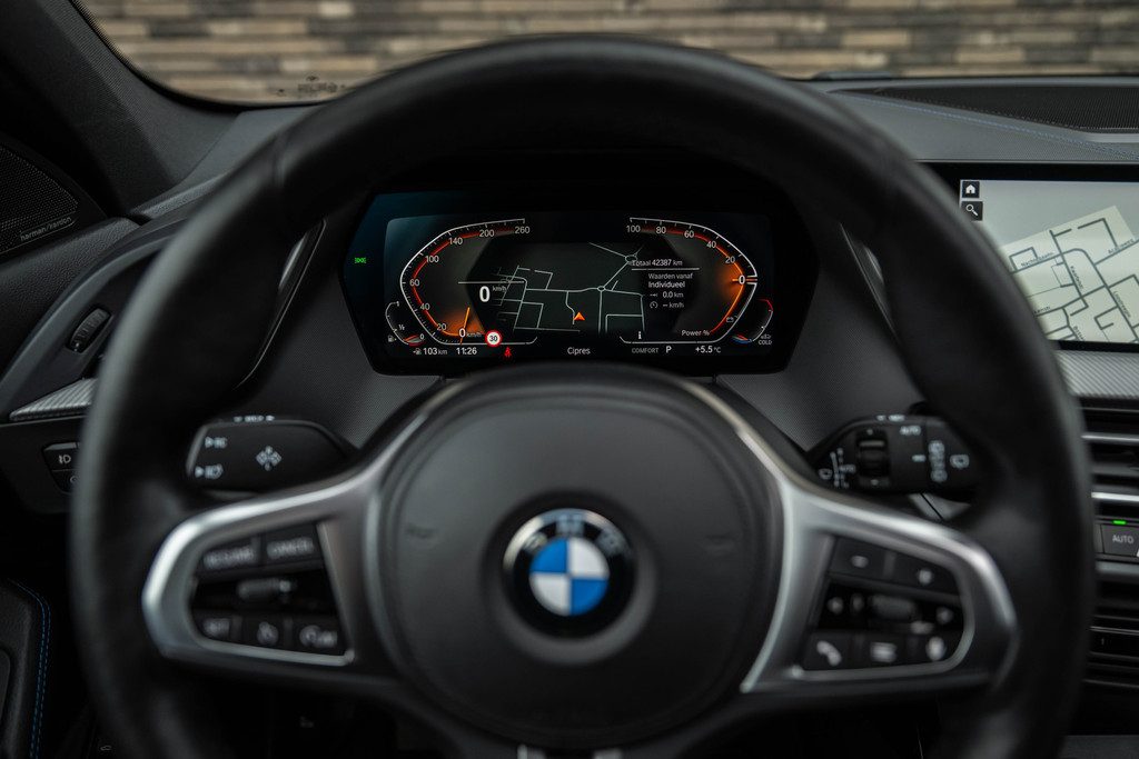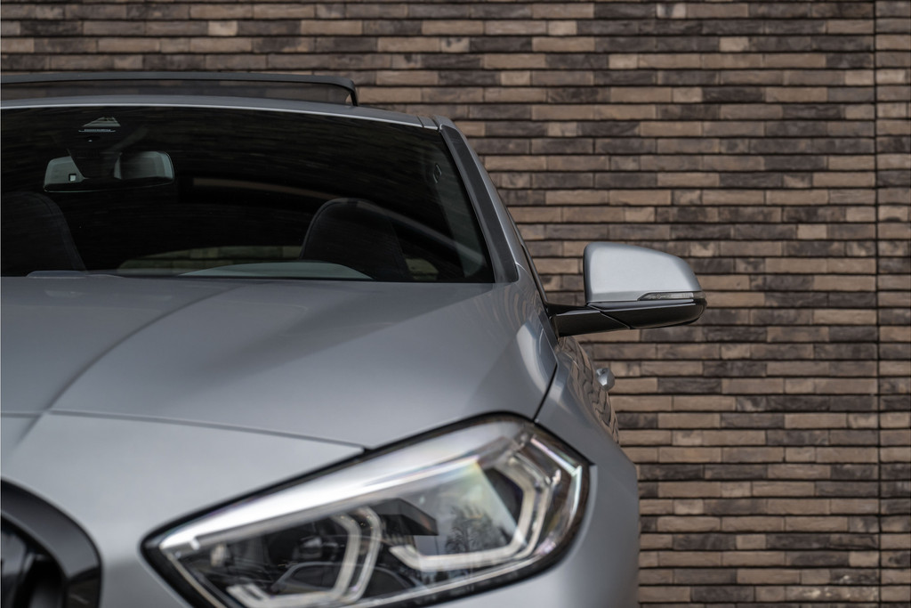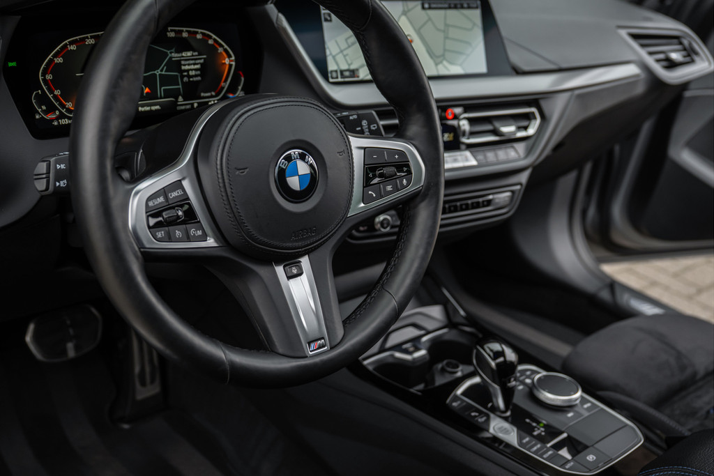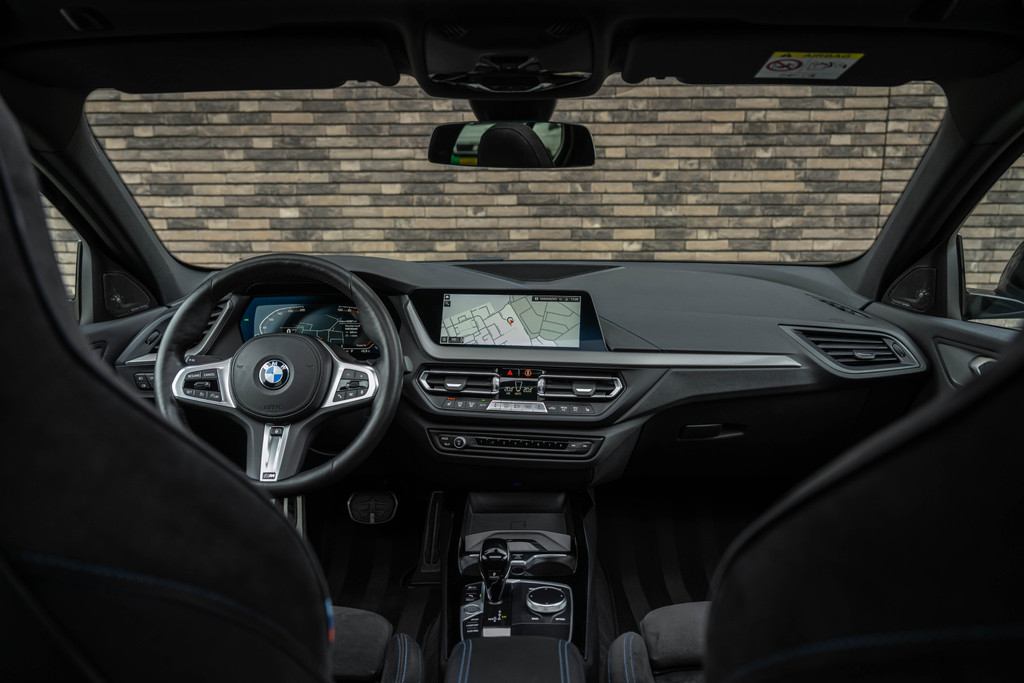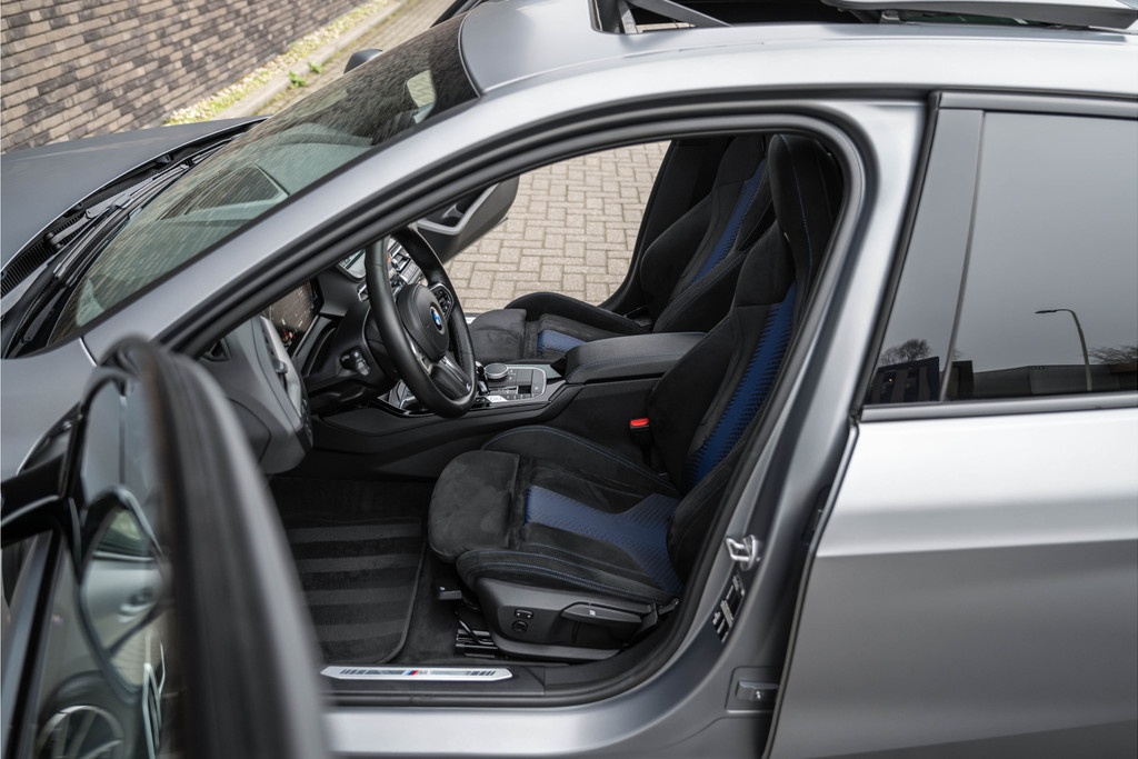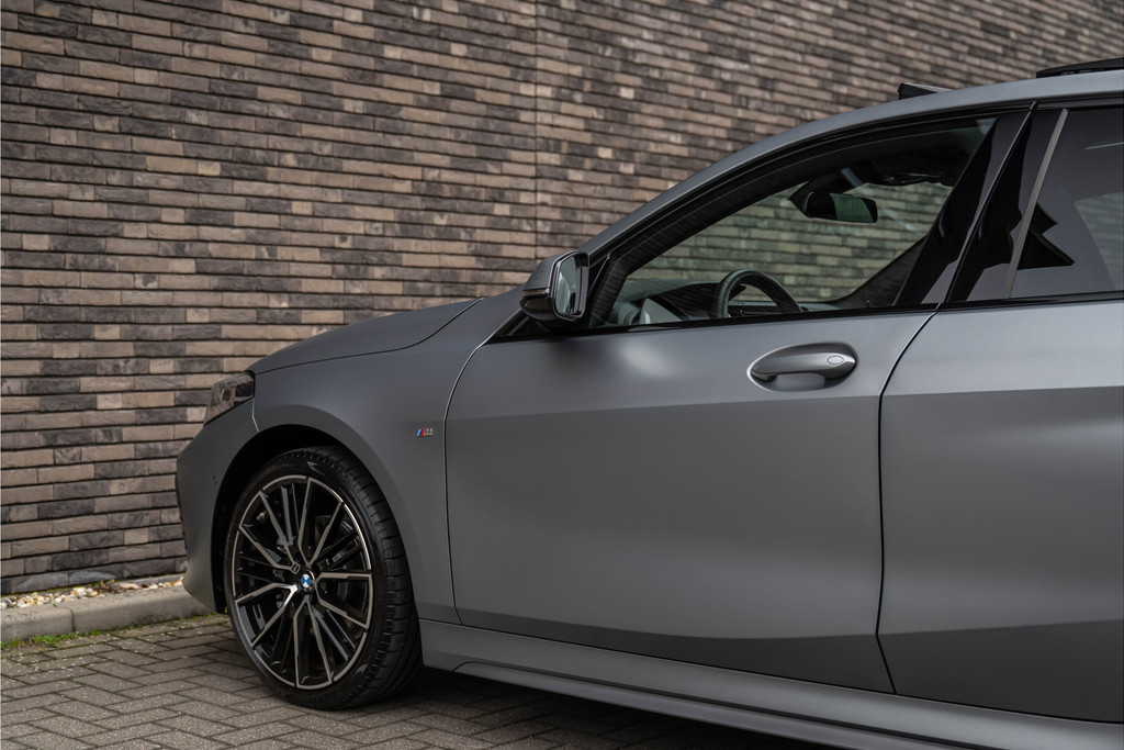 ***VERKOCHT***118i Aut. | M-Sport | Live Cockpit | Schaalstoelen | Panorama | H&K | Camera | 19"LM | Frozen Pure Grey